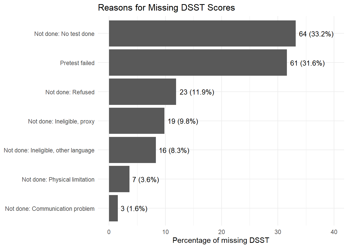 Figure 1 displays the distribution of reasons for missing DSST scores.